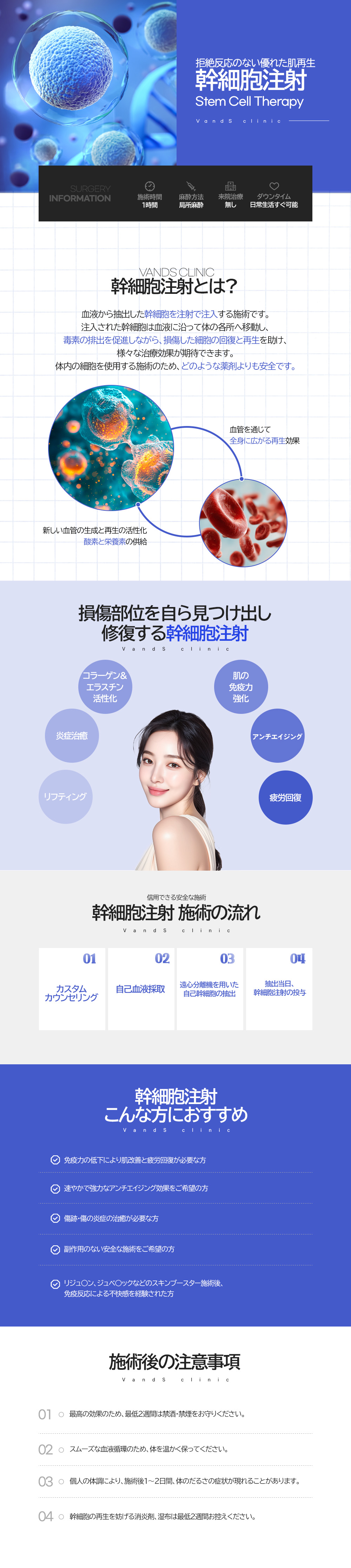 -施術後、幹細胞の定着と再生を促すため、約2週間はすべてのスキンケア施術・トリートメントを中止してください。