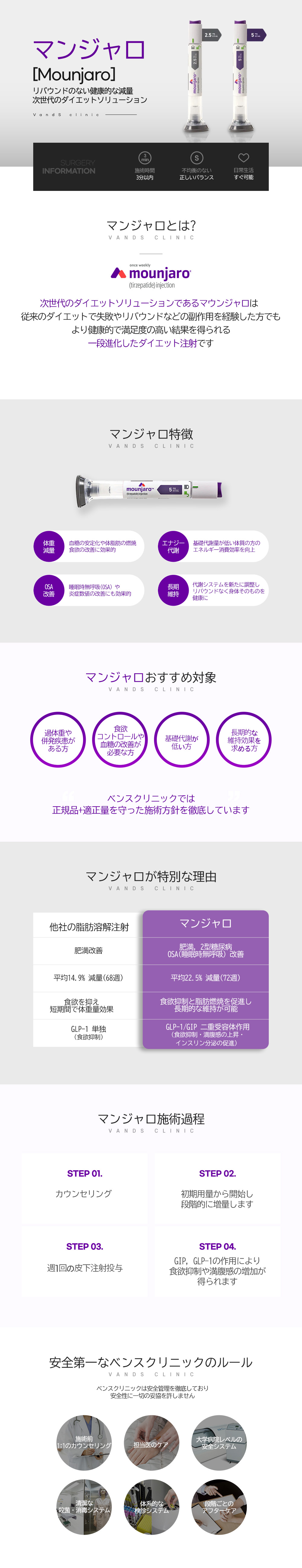 -ほかのダイエット補助剤では十分な減量効果を感じられなかった方 -内臓脂肪・メタボリック症候群・高脂血症など、複合的な健康問題を抱えている方 -自己注射に心理的ハードルがある方